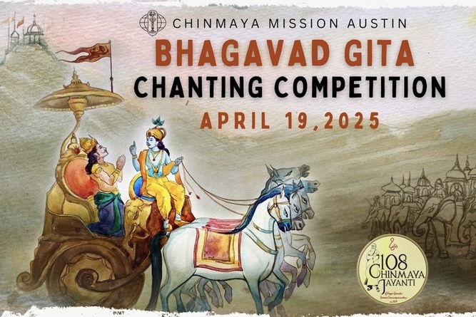 This year, Chapter XII: Bhakti Yoga – The Yoga of Devotion, has been selected for all of us to learn to chant. Competition details, including competition categories, age groups and verse assignments can be found on the CMA Gita Chanting webpage: https://chinmayaaustin.org/gcc_comp-signup.html